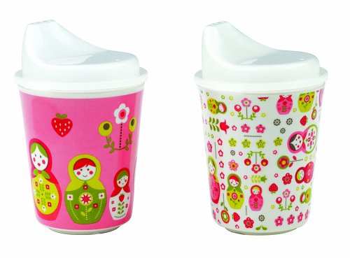 Inspired by the popular Russian iconography, SugarBooger introduces Matryoshka Doll Sippy Cup Set of Two. SugarBooger's set-of-two mini Matryoshka Doll Mini-Sippy Cups feature a different Matryoshka Doll Collection pattern on each 6 oz cup. Simply remove the BPA-free sippy lid when kids are old enough to drink from a cup. Made from melamine, which is dishwasher safe but not recommended for microwave use. Melamine looks like ceramic, but at a lighter weight. It's also more durable, but not unbreakable. All our melamine and vinyl-related products are non-toxic and lead-free according to U.S., European, and Canadian standards.