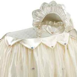 Layers of Satin, Layers of TulleFrom the crme satin skirt with tulle overlay, to the pointed edge style on the liner and hood, this Cream Dream Bassinet is an absolute fantasy The delicate rosebuds sewn on sporadically around the bassinet, along with the envelope shaped petite pillow, add that special touch. This enchanting set is ideal for your charming little one