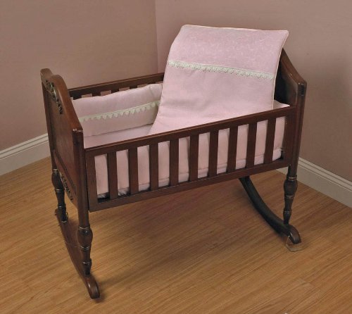 The Detailed Description of Baby Doll Bedding Madisson Puffed Brocade with Lace Cradle Bedding Set, PinkFeatures
