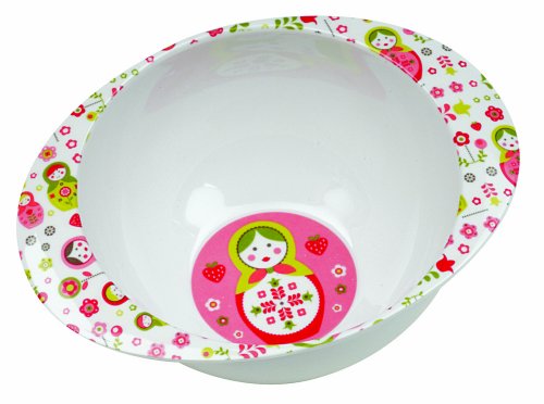 The Matryoshka Doll Collection from SugarBooger is as girly as it gets. Inspired by the popular Russian iconography, this modern take is featured in coordinating shades of pinks and greens. This bowl's deep profile works to minimize messes. Holds 1.6 cups. Wide carrying tabs provide serving ease, and the Matryoshka Doll Collection graphics create a playful mealtime mood.Made from melamine, which is dishwasher safe but not recommended for microwave use. Melamine looks like ceramic, but at a lighter weight. It's also more durable, but not unbreakable. All our melamine and vinyl-related products are non-toxic and lead-free according to U.S., European, and Canadian standards.