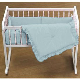 Red and Yellow, Green and Blue...We have the color for you Choose cradle bedding from eight bold solid colors to match your beautiful nursery. The three piece set includes a comforter with ruffled edges and a comfortable sheet and bumper, sure to keep your little one nice and comfy throughout the night Additional items available upon request.