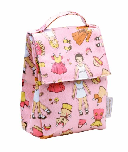 When off to school or daycare, the Paper Doll laminated cotton canvas Lunch Sack is the ideal choice to carry snacks. Features full insulation, a hook-and-loop closure, interior card for ID information and a convenient handle strap. Measures 10" x 6.5" x 4.5". Wipe clean, line dry. Non-toxic and lead-free, and conforms to US, European and Canadian standards.