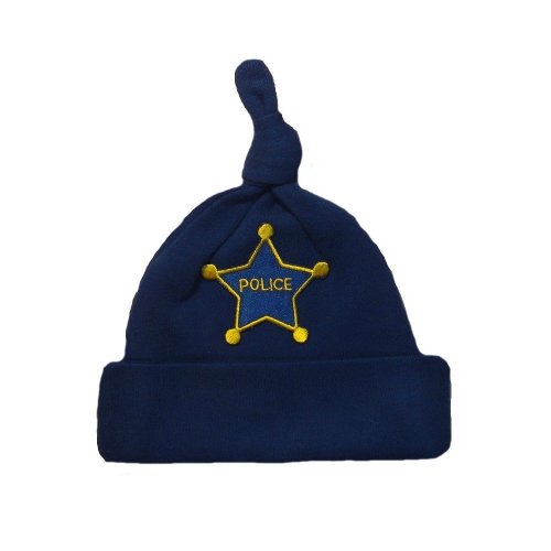 Super cute hat for your future policeman!Very soft, 100% cotton knit.Royal blue knotted hat with police badge on front.Eight sizes!By Jacqui's Preemie Pride