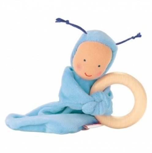 Rainbow Baby is close to being the perfect first toy for baby. Made of ultra-soft cotton, this little doll comes holding a ring made of beech wood perfect for teething and easing sore little gums. Colorful, soft and easy to hold, this doll is a great first gift new babies and teething toddlers. The ring can be removed for washing and easily re-attached when needed. This little Rainbow Baby wears a hooded romper and has a simple, reassuring expression. A wonderful grabbing and teething doll for baby.